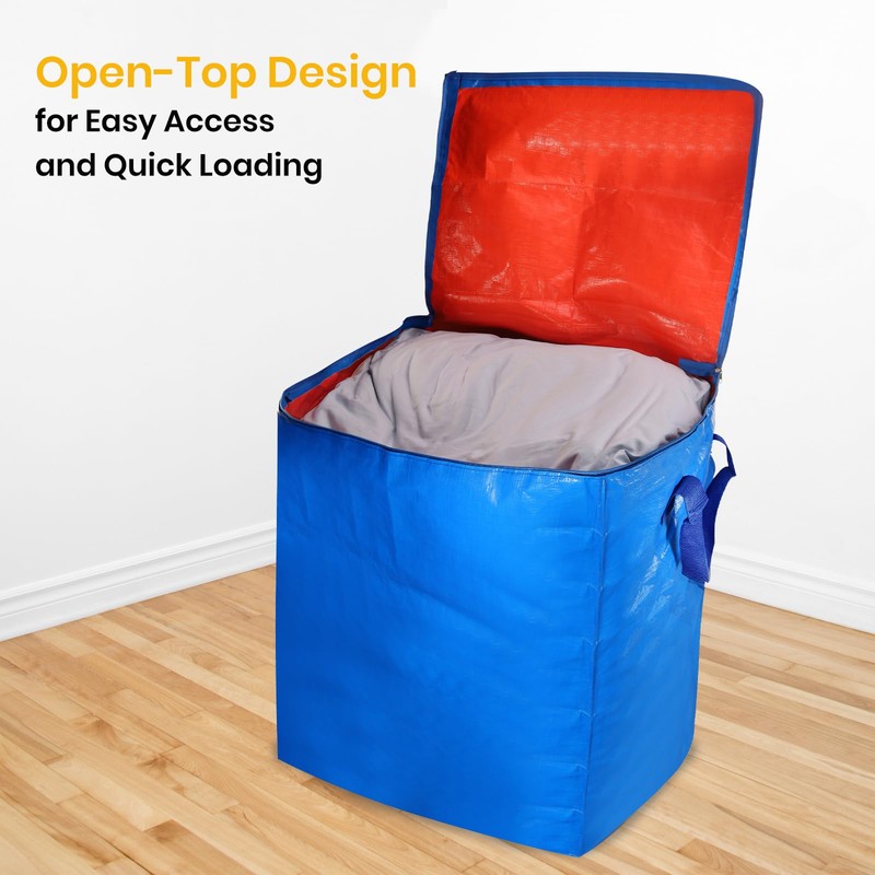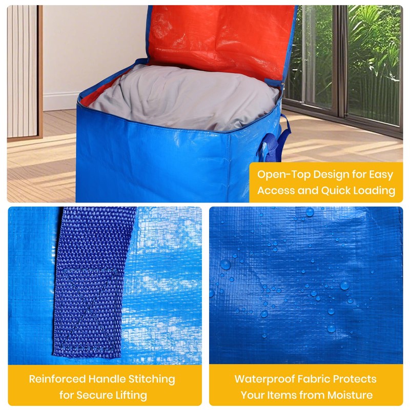 Kiolnoy 2 Pack 55-Gallon Heavy Duty Moving Bags, Large Storage Totes with Zipper, Alternative to Moving Boxes for Storage, Seasonal Clothes, Student Moving, College Dorm (Blue)