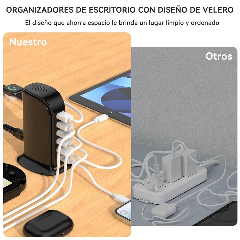 - 【Fácil de Transportar】: Su diseño compacto lo hace fácil de llevar, y viene con un cable desmontable de 5 pies, ideal para adaptarse a tu maleta, mochila o bolso, ocupando muy poco espacio. Es el compañero perfecto para viajes, oficinas o cualquier lugar donde necesites cargar múltiples dispositivos.