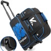 Kioqiear Double Roller 2 Ball Bowling Bag with Large Separate Shoe Compartment and Oversized Accessory Pocket, 36" Extendable Handle. (BLUE)