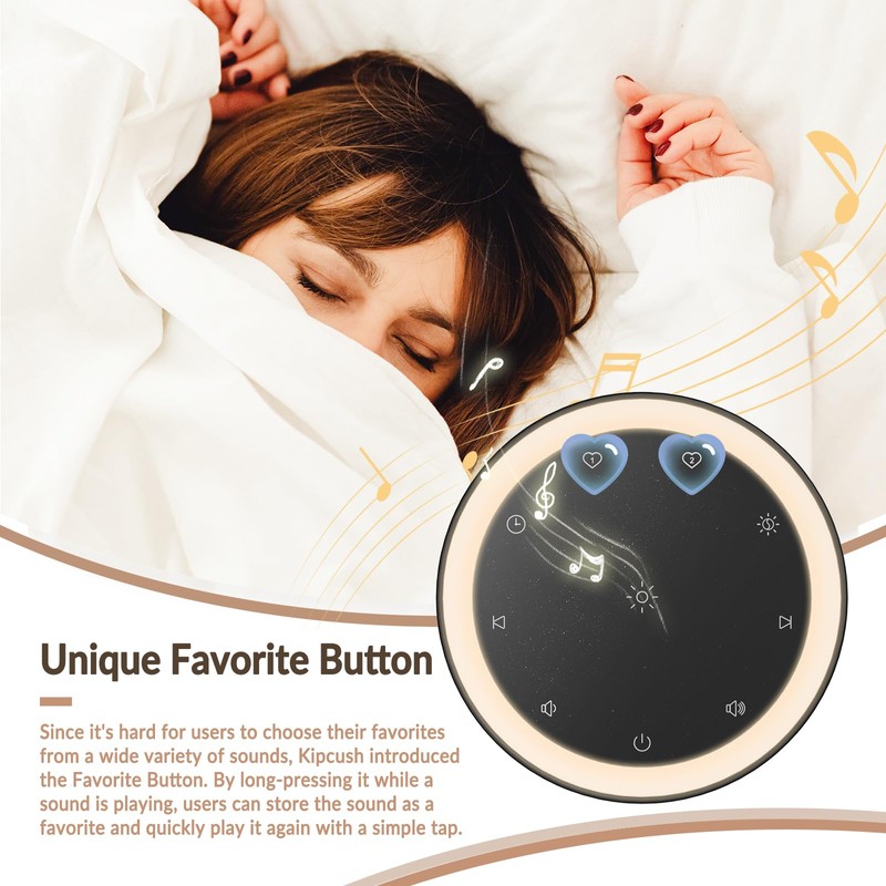 Kipcush Sound Machine & Night Light for Adults, Baby, Kids. White Noise Machine with 20 Soothing Sleep Sounds. Small Size & Portable Design for Bedroom (Black, Small)