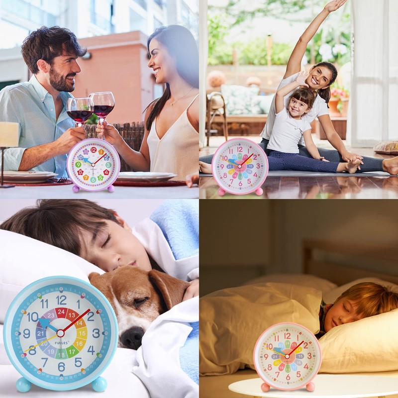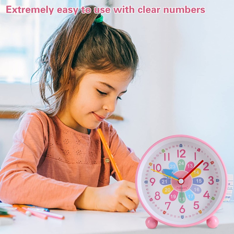 • Children’s analogue alarm clock: Simple, bright design. Decorate and beautify your children's room, playroom, desk and more. Suitable for living rooms, classrooms, kitchens and other rooms, is a perfect gift for your children, girls, boys for parties, birthday, back to school, children's day gifts, Christmas gift, etc.