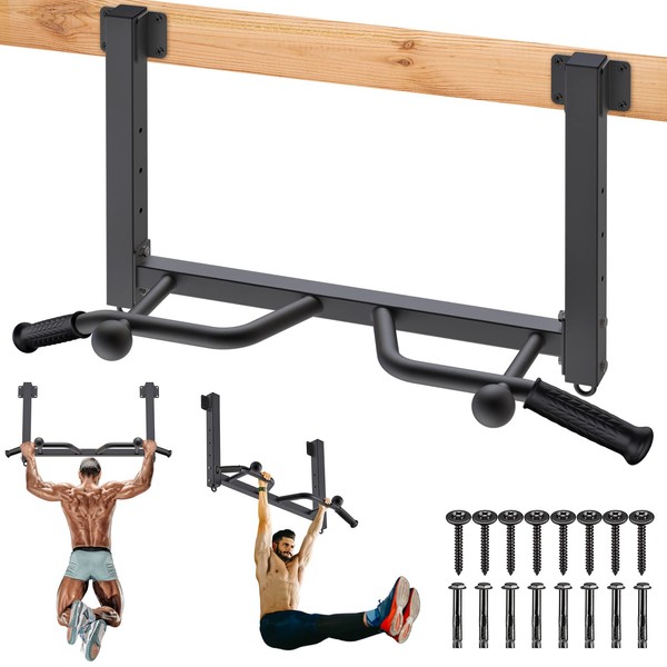 Kipika Multifunctional Joist Mounted Pull Up Bar, 4 Levels of Height Adjustment, Multi-Angle Grip, Chin Up Bar Joist Mount, Home Gym Workout Strength Training Equipment