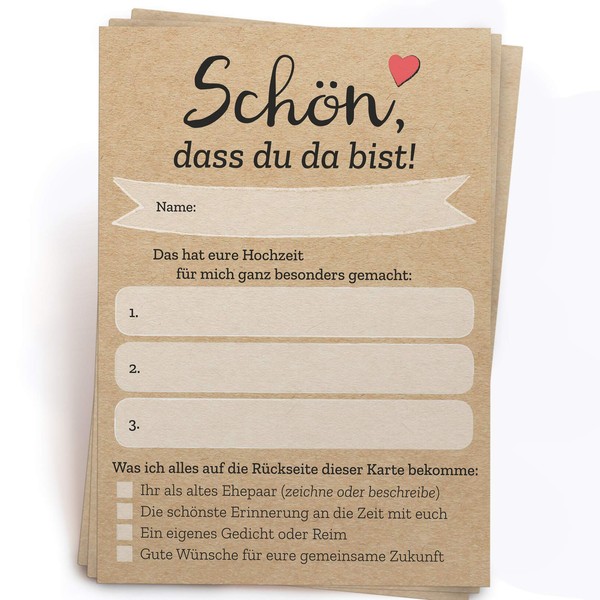 The wedding game works so easy with the 52 "Schön, dass du da bist" cards:
