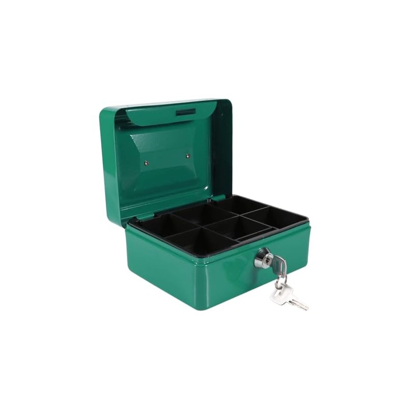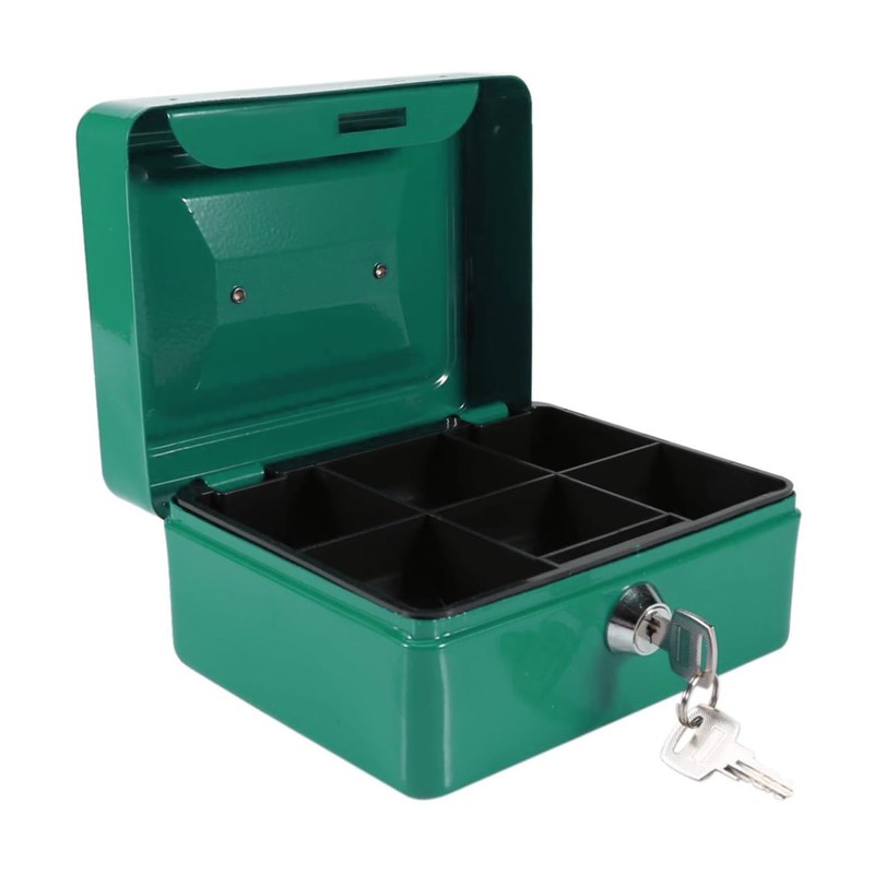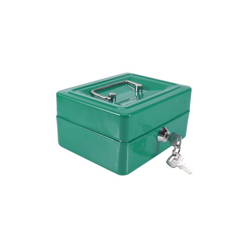 Kippen 10032V1 Cash Box with Coin Compartment, Colour: Green, Dimensions: 150 x 120 x 80 mm
