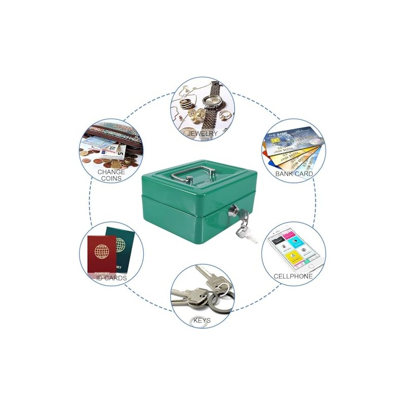 Kippen 10032V1 Cash Box with Coin Compartment, Colour: Green, Dimensions: 150...