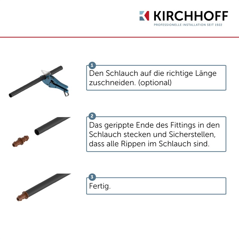 Kirchhoff | 3 x Verbindungsstück | Fitting für Tröpfchenbewässerung | Steckverbindung für Drip-Bewässerung | Made in EU | Garten-Bewässerungssystem