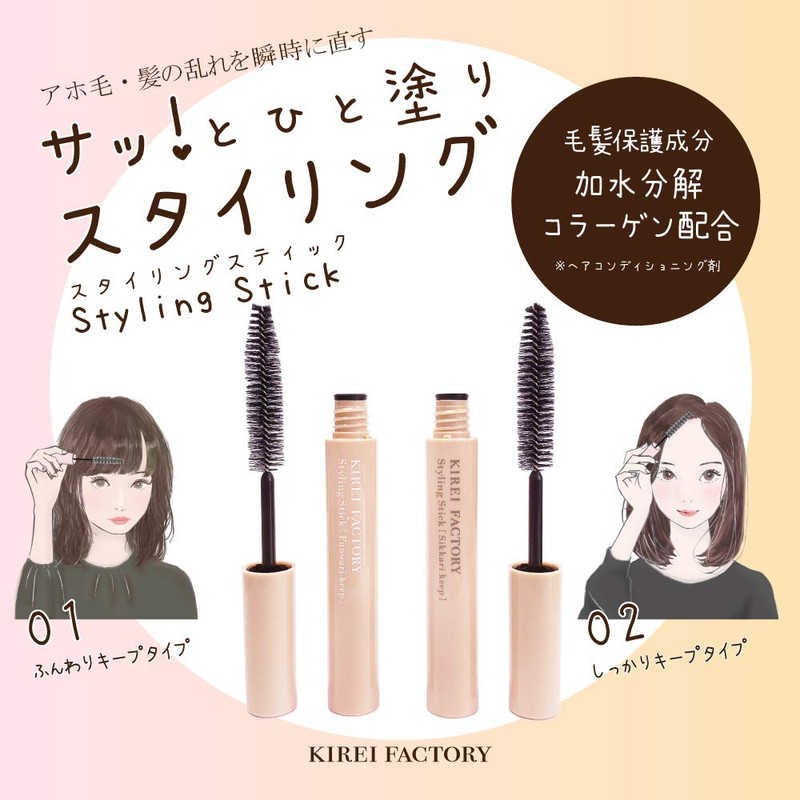 Kirei Factory Styling Stick, Fluffy Keep, Hair Wax, Lemon & Eucalyptus, 0.3 fl oz (10 ml) (x 1)