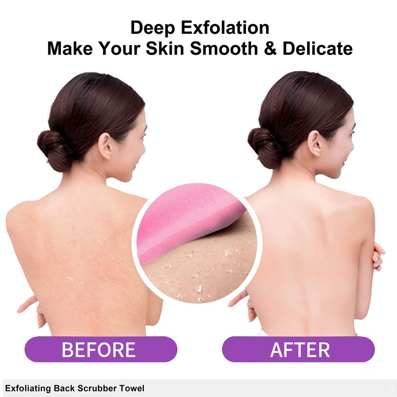 2. With a length of 52 cm and a width of 18 cm, these towels are elastic and designed to easily reach your back and other hard-to-reach areas for thorough cleaning.