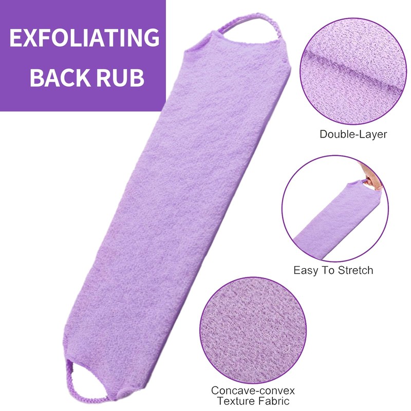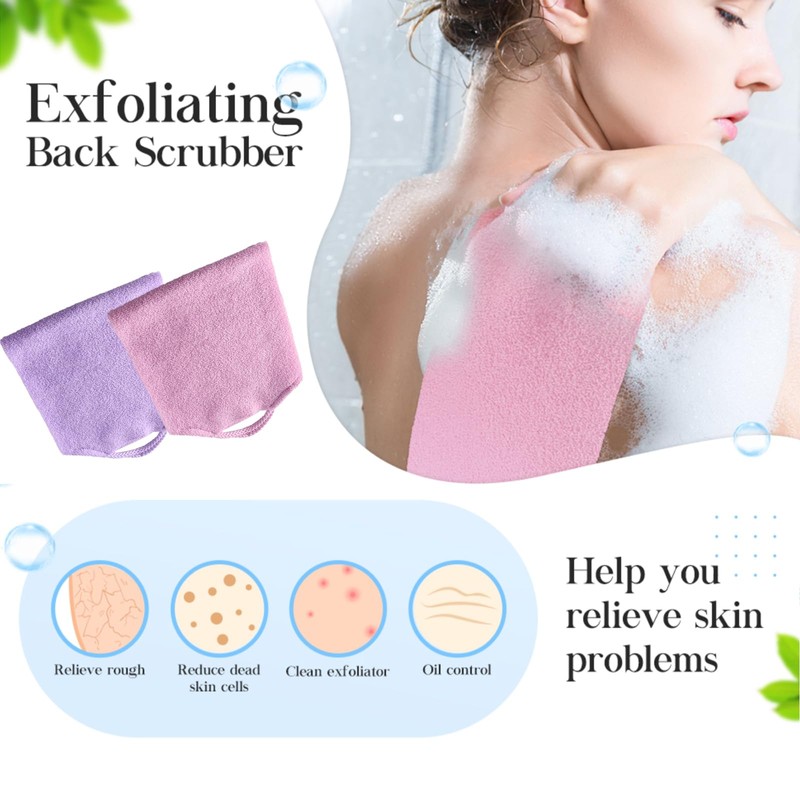 - The exfoliating back scrubber set includes 2 nylon washcloths in purple and pink - perfect for everyday use and replacement.