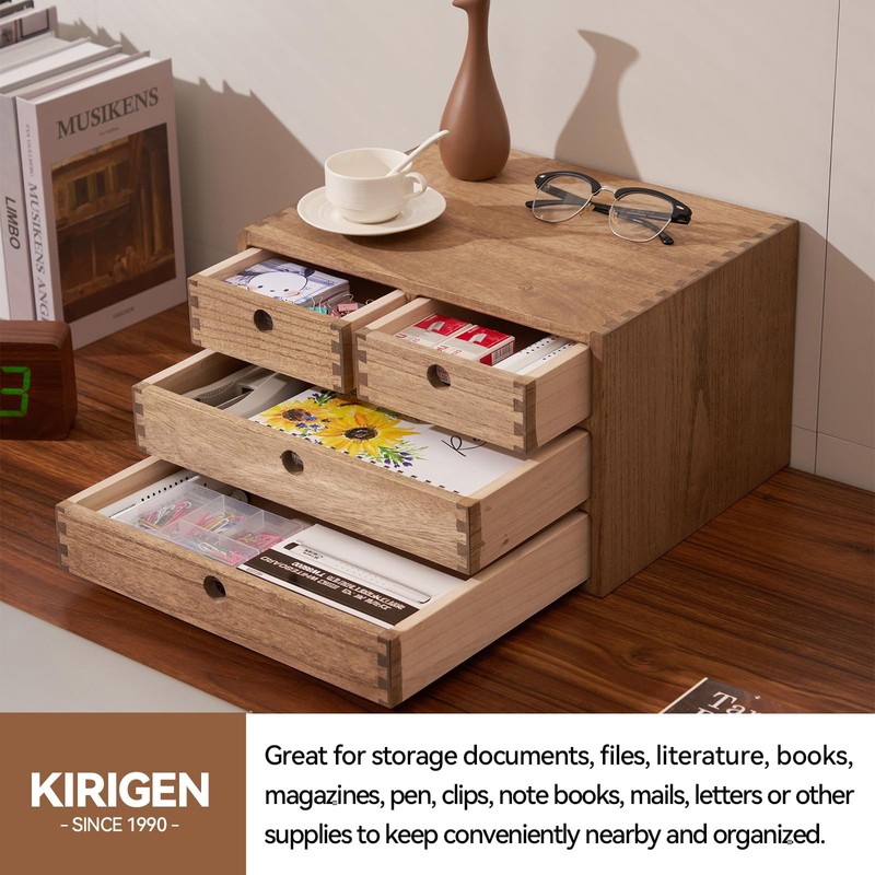 KIRIGEN Wood Desktop Storage Cabinet/Workspace Document Office Necessity Organizer with 4 Drawers/Home,Office Letter Mail Sorter with 3 Levels/Hold Makeup Box (BR, 3-Layer &4 Drawers)
