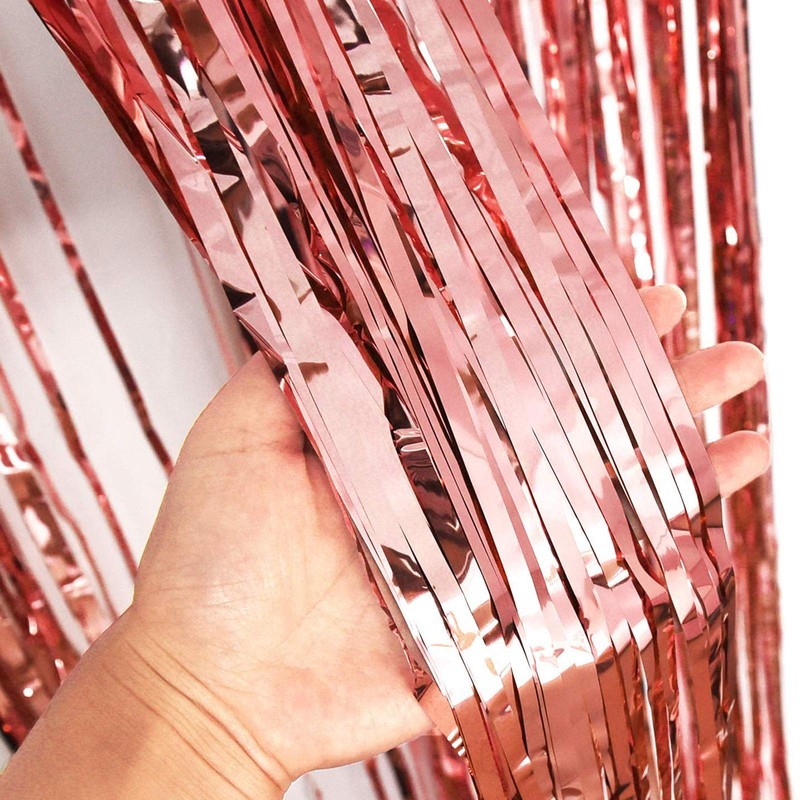 KIRIKOU Pack of 3 Foil Fringe Curtains Background Decoration, Metallic Tinsel Curtain Photo Background for Birthday Bachelorette Party Bride Baby Shower Decorations (Rose Gold, 3.2 ft x 6.5 ft)