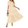 KIRUNDO Womens Summer Dresses Wedding Guest Floral Midi Sundress Short Puff Sleeve Flowy A Line Smocked Tiered Boho Dress(Apricot, Large)