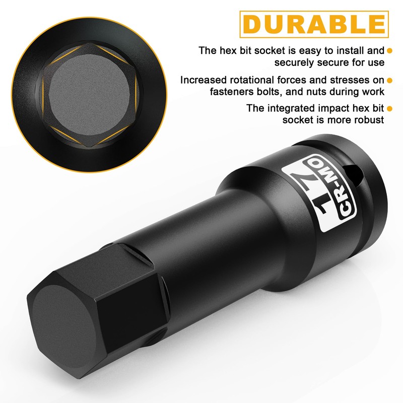 KIRXST Power Bit Insert Hex Socket 1/2 Inch H17 (17 mm) Impact Hex Bit Insert, CR-MO Steel, for Torque Wrench, Drill Set, Ratchet