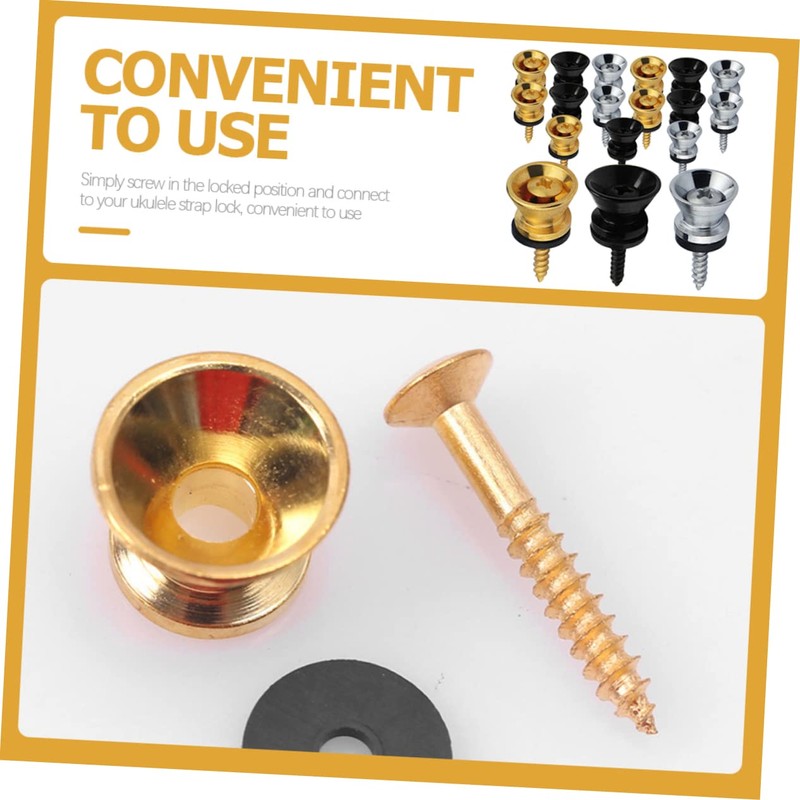 Ukulele end pin It protects your instrument and is not easy to fall off.Metal Strap Button Easy to install and use.Guitar Strap Button The delicate surface makes this guitar look fashionable.Bass Belt Lock This product is a guitar strap fixing button, which is made of high-class materials and is durable