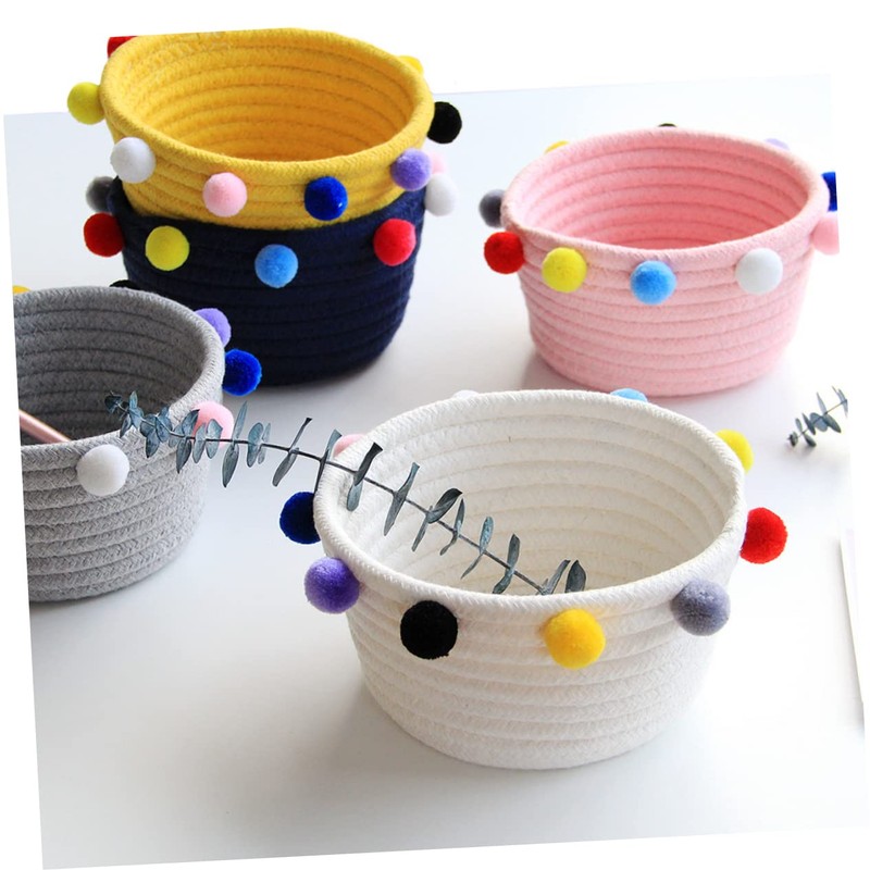 rope basket This basket is made of fabric cotton material, it is durable and safe.nordic style storage basket a great storage holder for you.basket Cotton rope knit design with detail makes it attractive.desktop storage basket You can storage some sundries, keys, phone into it etc.small woven storage basket A practical basket that you should not miss