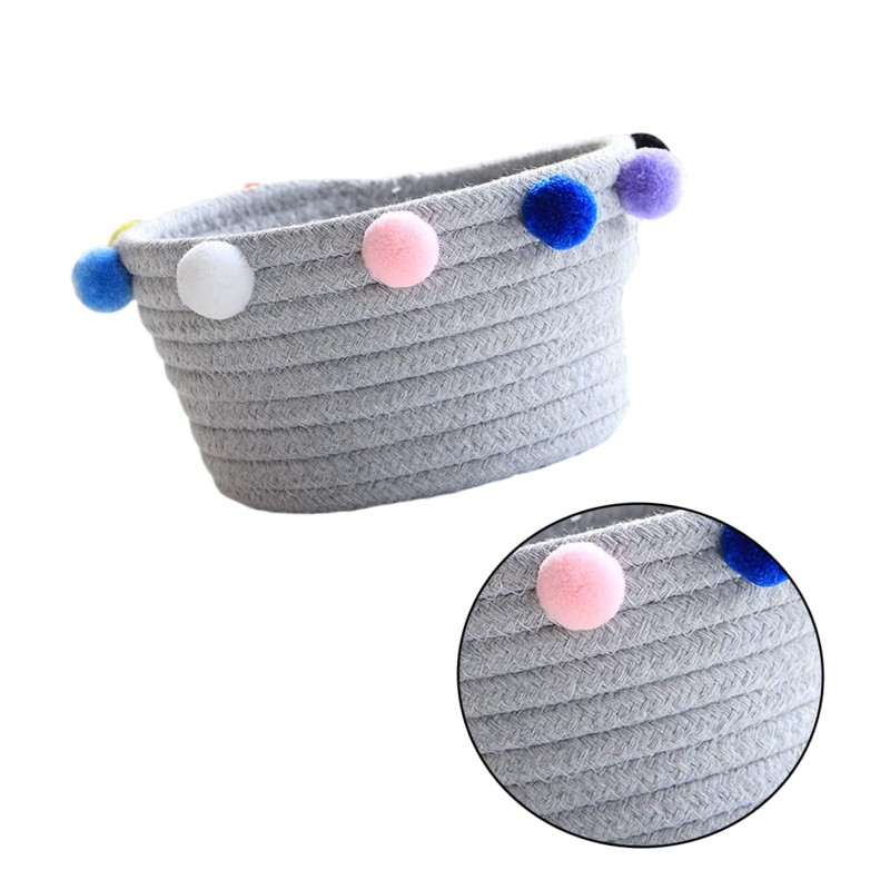 Kisangel 1Pc Cotton Rope Woven Storage Basket Soft Gray Yarn Ball Organizer for Desktop Sundries Keys Cosmetics Durable Washable Container for Home Organization