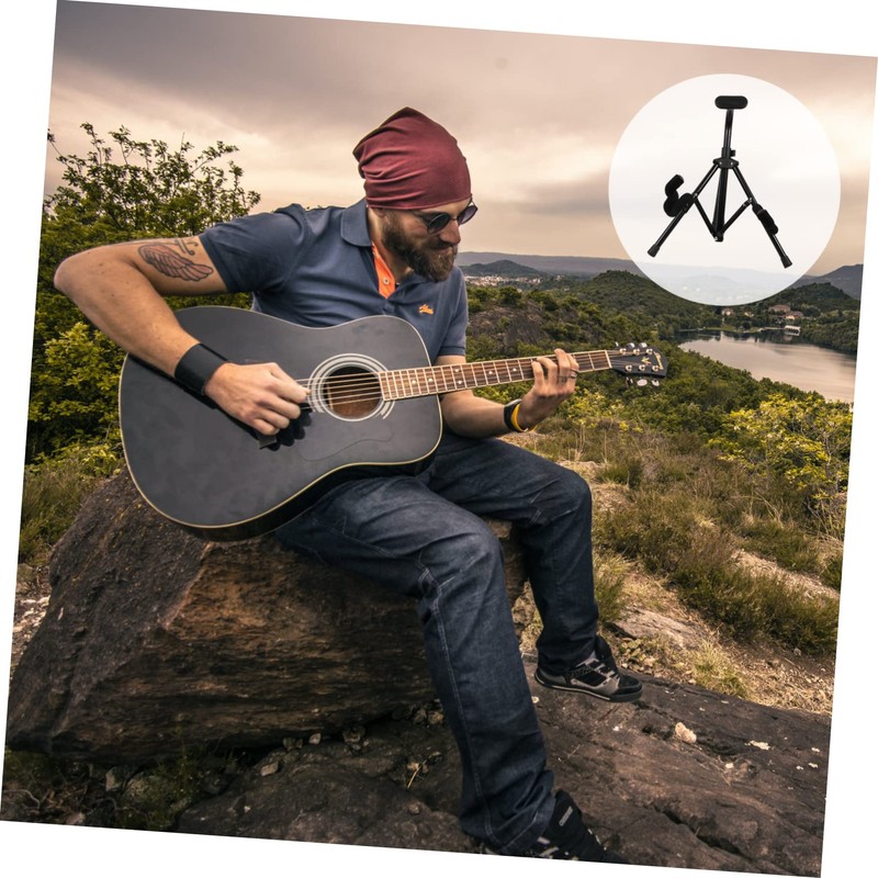 -Tripod movable support, fixed with rivets, firm and durable Guitar Hook Rack.