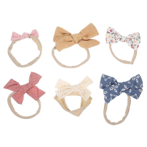 Kisangel 6pcs Bow Headbands Soft Elastic Hair Accessories for Newborns Comfortable and Cute for Daily Wear for Dress Up and Special Occasions
