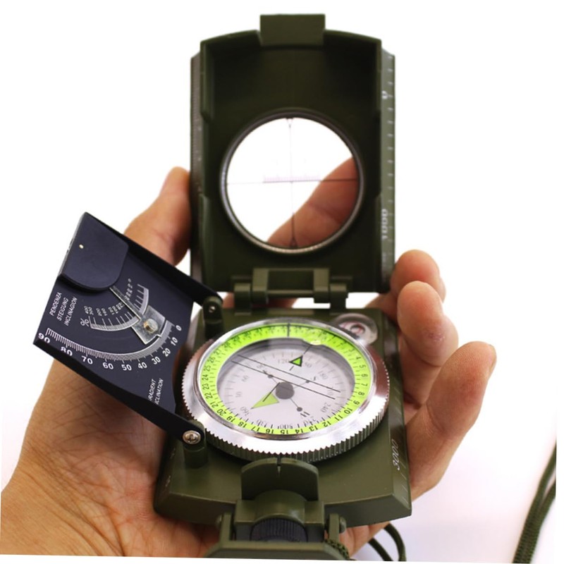Kisangel Hiking Compass Professional Metal Compass Inclinometer Accurate Reading Fluorescent Scale for Outdoor Activities