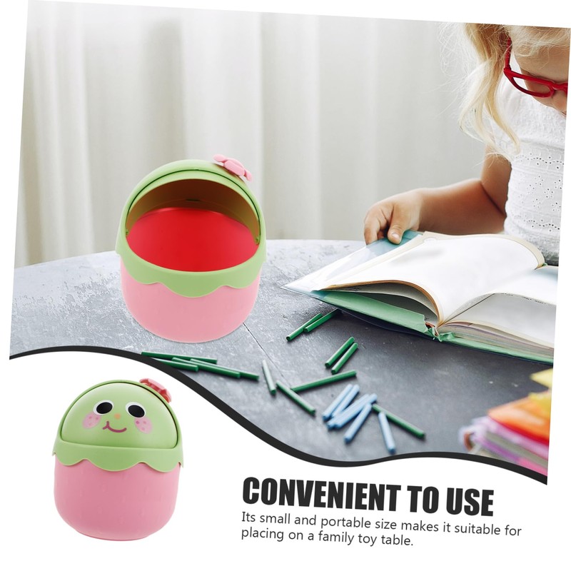 -Engaging design: the strawberrythemed cartoon design is sure to attract attention, making waste disposal a fun activity tiny trash can