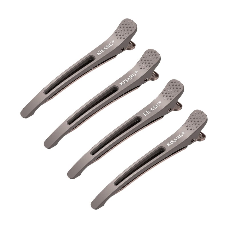 KISARG ダッカール メンズ レディーズ兼用 ヘアピン ヘアクリップ クリップ 美容師プロ用 前髪 髪留め クリップ ブロッキング 跡がつかない カールクリップ 錆びにくい ヘアカット スタイリング しっかりとまる 大きめ 4本セット入り グレー