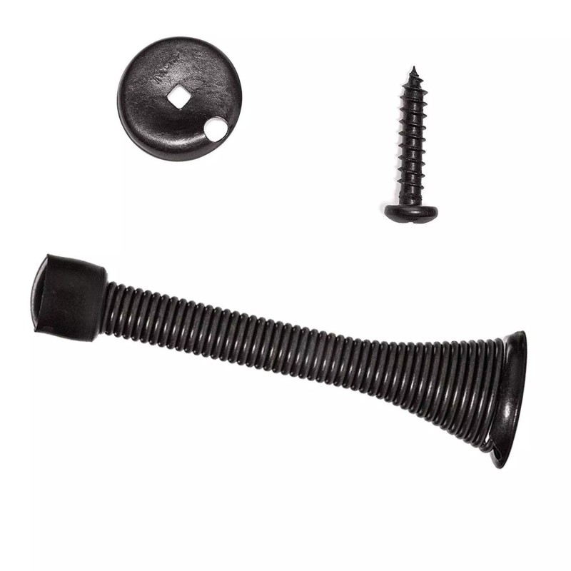 12 Pack Spring Door Stops 3 1/4" Flexible Heavy Duty Spring Door Stopper with RustProof Screw Rubber Bumper Tips (Black)