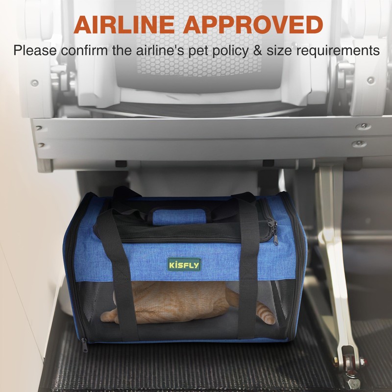 KISFLY TSA Approved Pet Carrier in Cabin 17 x 11 x 9.5 inches, Small Dog Airline Approved Carrier Up to 16 Lbs, Cat Carrier Soft, Bunny Cat Puppy Travel Carrier, Airline Pet Carrier Under Seat, Blue
