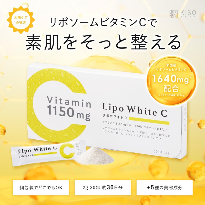 KisoCare ビタミンC リポソームビタミンC 1640mg (ビタミンC1150mg) サプリメント 顆粒 レモン味 30包 1ヶ月分 αリポ酸 ナイアシン ヒアルロン酸 L-シスチン