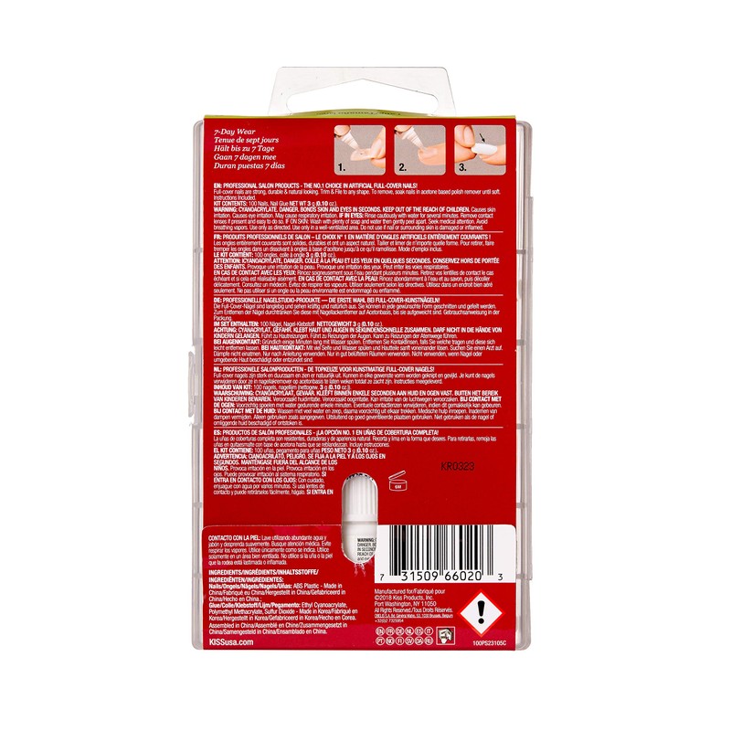 Kiss 100 Full Cover Nails Long Square (6 Pack)