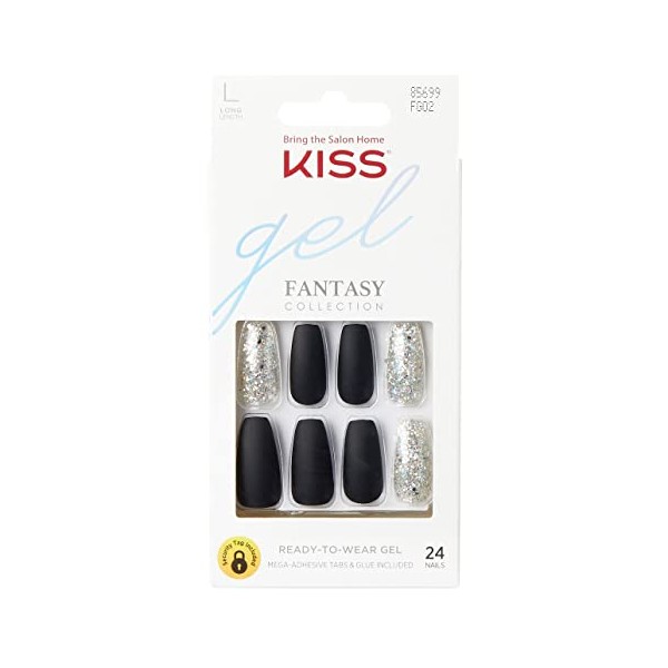 Kiss Gel Fantasy Collection 24 Count Black/Sparkle Long Length