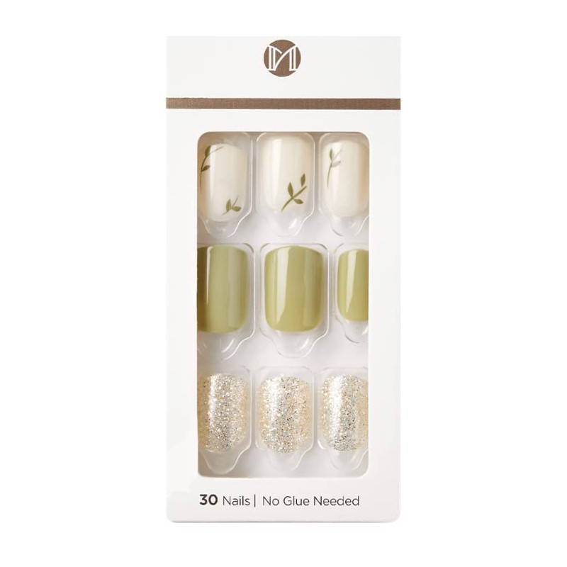 Kiss ImPress Press-On Manicure Shiny Olive Green Short Length Nails IMX39X Spring is Coming (Leaf Accent Nails), 1.0 Fl Oz