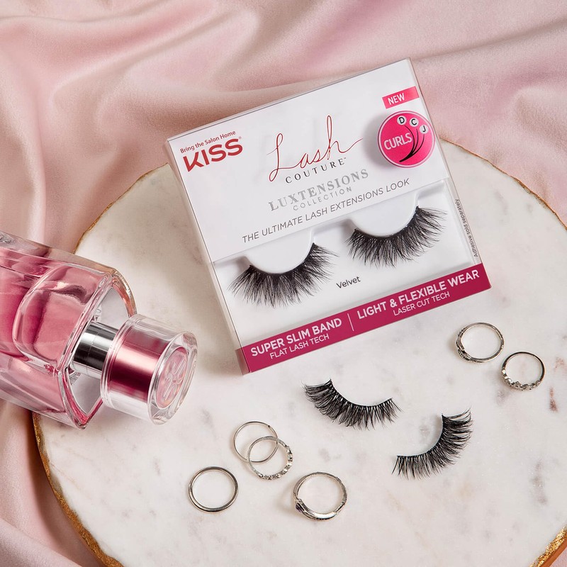 KISS Lash Couture LuXtensions Collection False Eyelashes, Flat Lash Technology, Super Slim Band, Real Lash Extension Fibers, Reusable, Contact Lens Friendly Strip, Style Velvet, Black