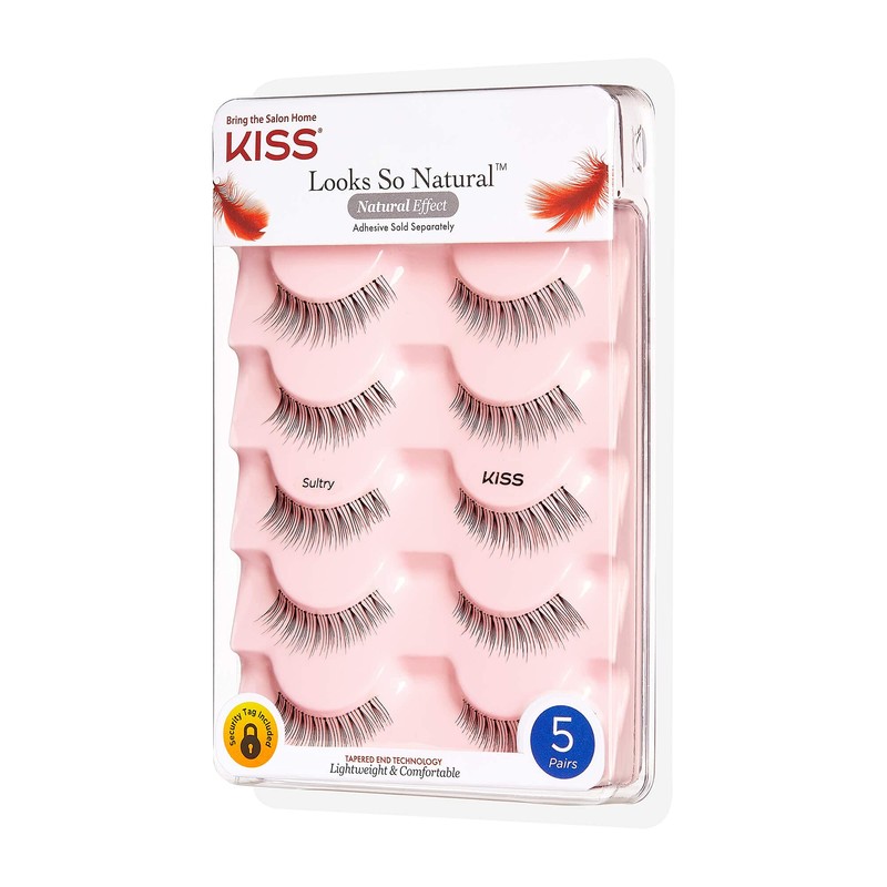 KISS Looks So Natural False Eyelashes Multipack, Lightweight & Comfortable, Natural-Looking, Tapered End Technology, Reusable, Cruelty-Free, Contact Lens Friendly, Style Sultry, 5 Pairs