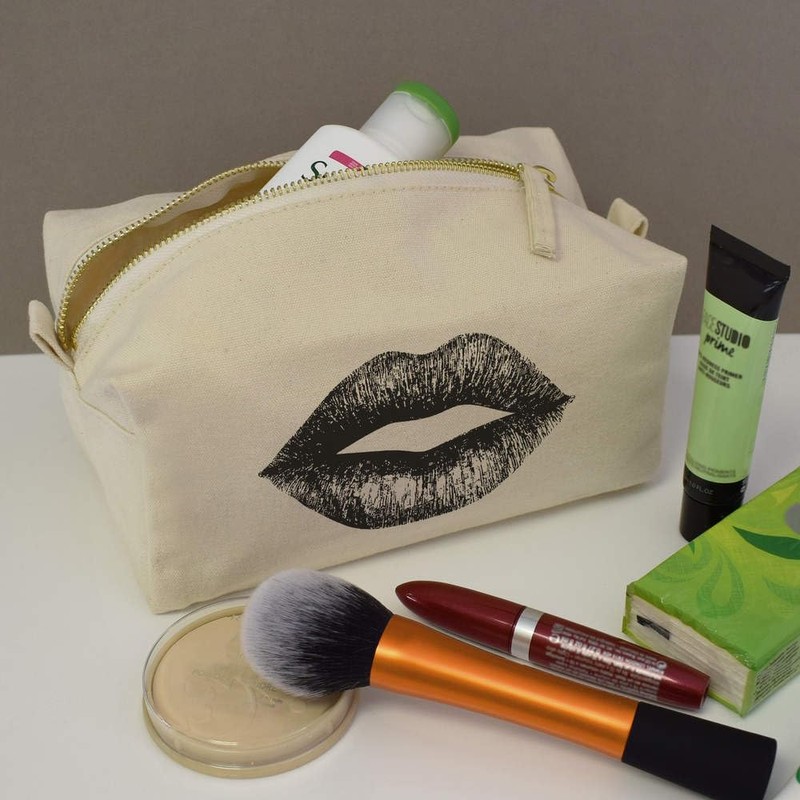 'Kiss Mark' Canvas Wash Bag/Makeup Case (CS00043375)