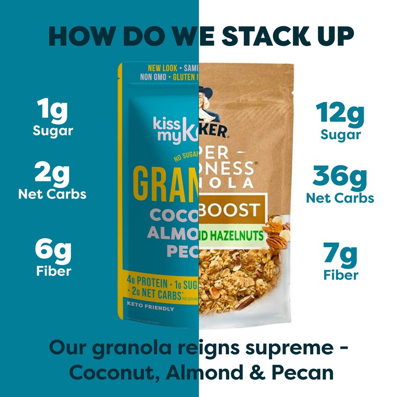 Comes in a variety of flavors, including kiss my keto granola coconut almond pecan, kiss my keto granola coconut, almond & pecan, miss keto granola coconut, keto cereal chocolate granola, kiss me keto gluten free chocolate granola, chocolate keto cereal, sugar free chocolate chip granola, chocolate almond granola, and peanut butter granola, and vanilla granola. Never leave your honey granola bulk cravings unsatisfied! This no sugar granola will be your favorite way to enjoy grainless granola. Keto cereal low carb is the best low karb keto granola way to satisfy all your cravings!