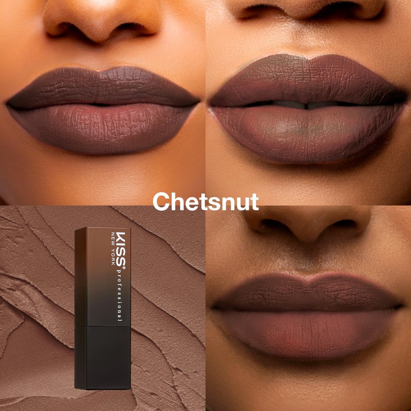 KISS NEW YORK Professional Rich Pigmented Lipstick, Smooth&Creamy Satin Finish, Long Lasting, Infused with Shea Butter and Vitamin E (Chestnut)