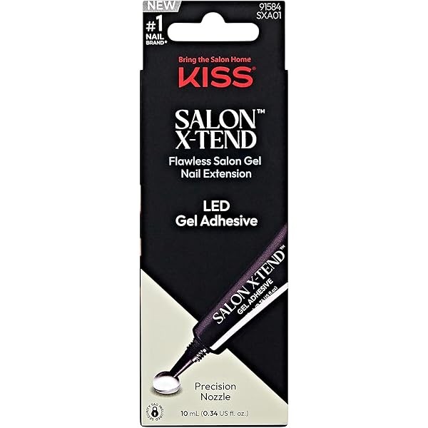KISS Salon X-tend, Press-On Nails, Nail glue included, 'Gel Adhesive', Clear, Size, Shape, Includes 10Ml Led Gel Adhesive