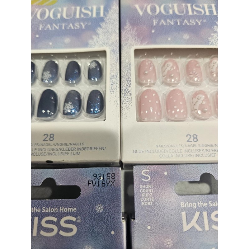 Kiss Voguish Fantasy Press on Holiday Nails Bundle of Six Sets With Glue.