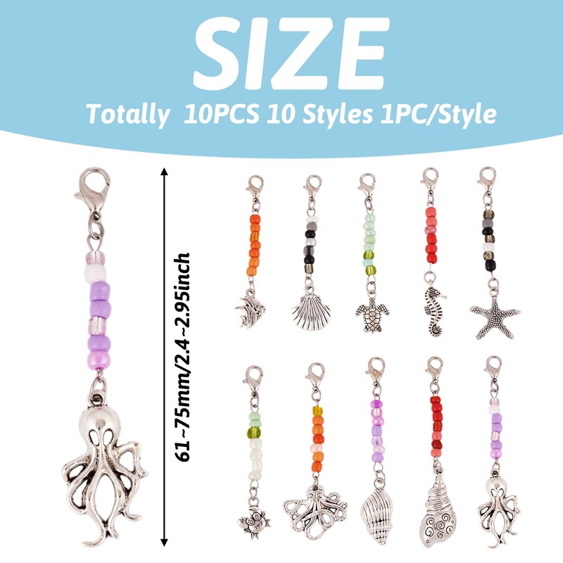 - Product Details: The package contains 10pcs of ocean theme pendants for keychain making in 10 styles, about 61-75mm long, pendant: 1.5-30mm.