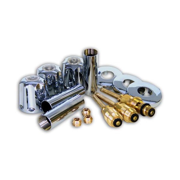 - Includes 2 H/C stems 1 Diverter stem 3 chrome handles and trim, 3 brass bib seats and all necessary washers and gaskets