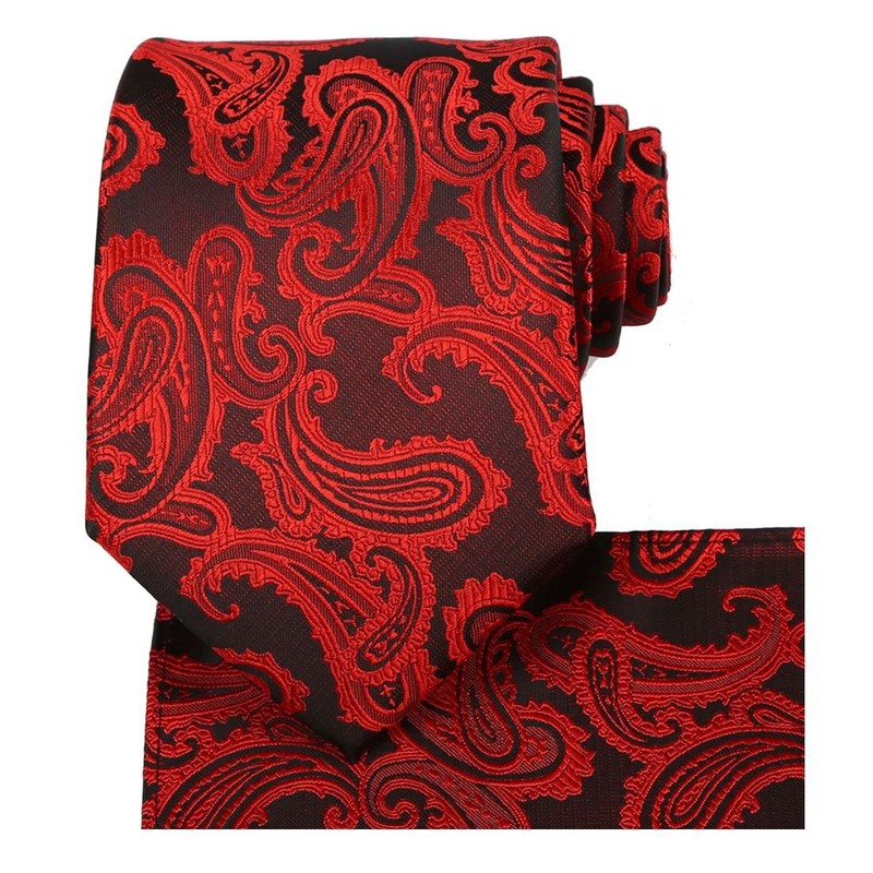 KissTies Mens Red Tie And Pocket Square Paisley Necktie