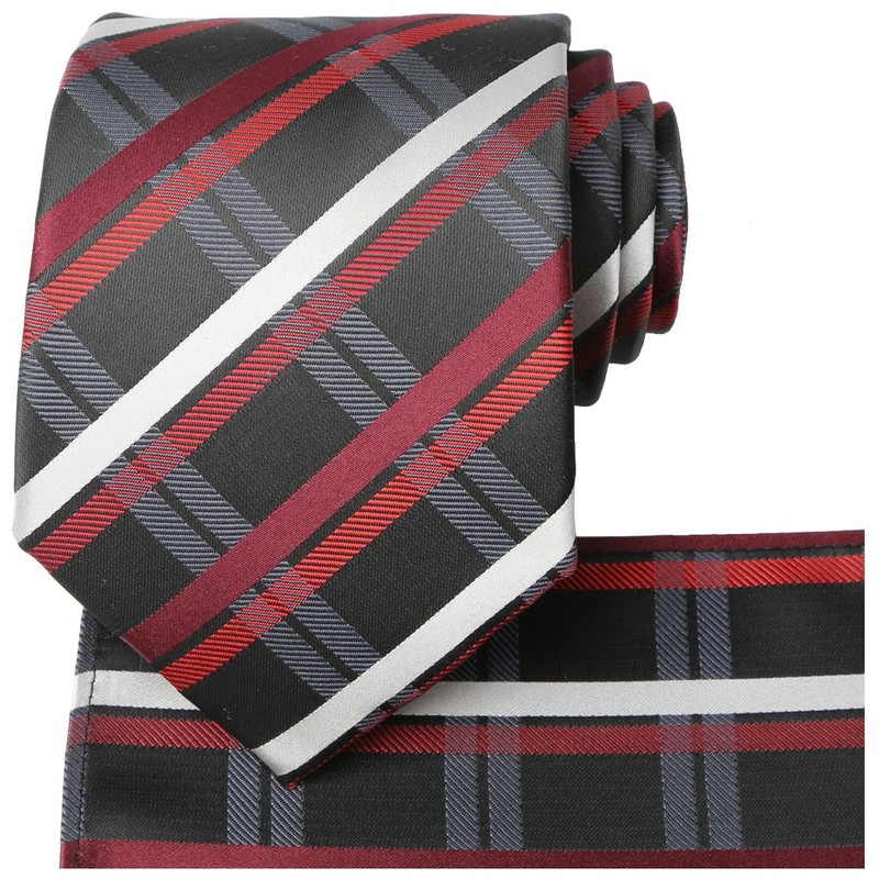 - Including 1 Necktie + 1 Pocket Square + 1 Gift Box. It is comfortable to wear and to touch, glossy tie featuring hand finishing, allow men to express their style and vary their look without having to buy many different suits. As fashion basic choose for shirts, the red black color of the ties is vivid with luxury and elegant silky feelings.