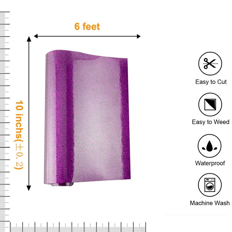 KISSWILL Glitter Heat Transfer Vinyl Rolls, 10 Inch X 6 Feet Iron on Vinyl Compatible with Silhouette Cameo 3 4 Cutting Machine (Purple)