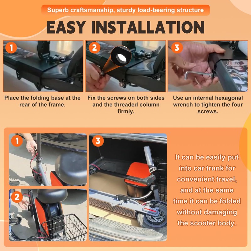 - Robust & Reliable Design: Engineered for durability, this scooter seat boasts a maximum load capacity of 265 lbs, providing stable and secure support for adult riders. Enjoy a safe and comfortable journey every time.