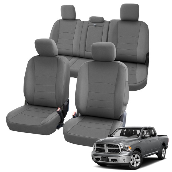 Kistrba Seat Covers Compatible with 2009-2021 Dodge Ram 1500 & 2010-2018 Ram 2500/3500, Knitted Fabric Front & Rear 60/40 Split Seat Complete Set, Gray