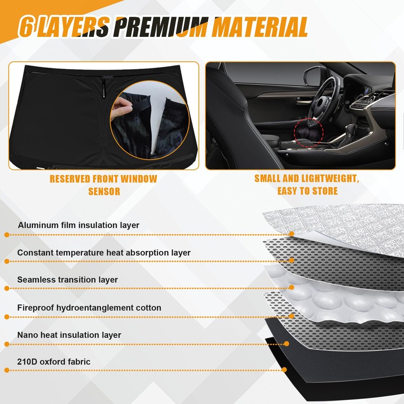 - Effective Heat and Sunlight Reflection: Made of six layer-thickness material which has higher density, including a silver reflective layer, the product blocks up to 99% of rays and heat buildup. This ensures the car interior remains cooler, reducing the need for excessive air conditioning and conserving energy.
