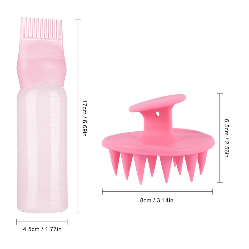 Size: hair oil applicator: 17 cm x 4.5 cm, hair massage brush: 6.5 cm x 8 cm.
