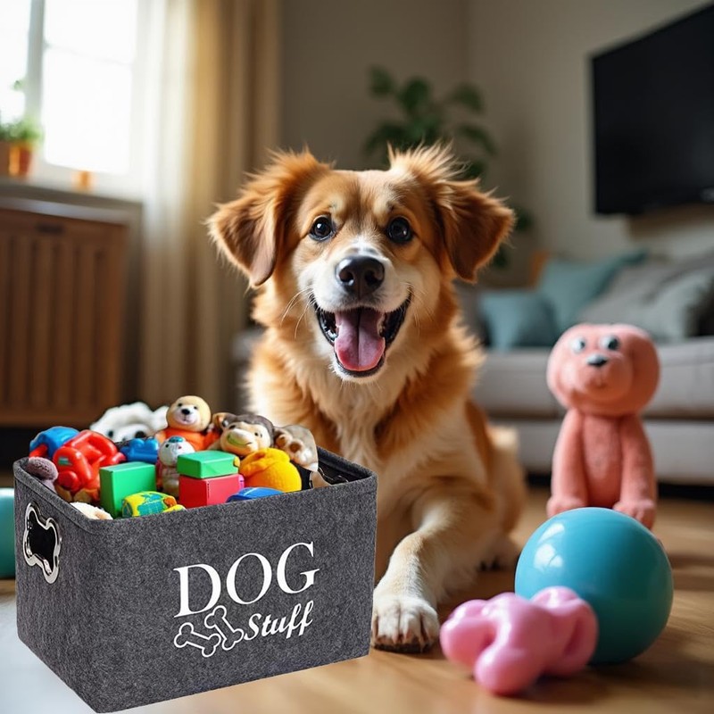 - 【 Multi- Dog Toy Box Storage 】This dog toy basket storage is designed to help you save space and time. Not only is the cat toy basket perfect for organizing dog toys, it can also store leashes, collars, blankets, clothing, grooming supplies and other lesser-used items, making it the ultimate storage solution for pet lovers