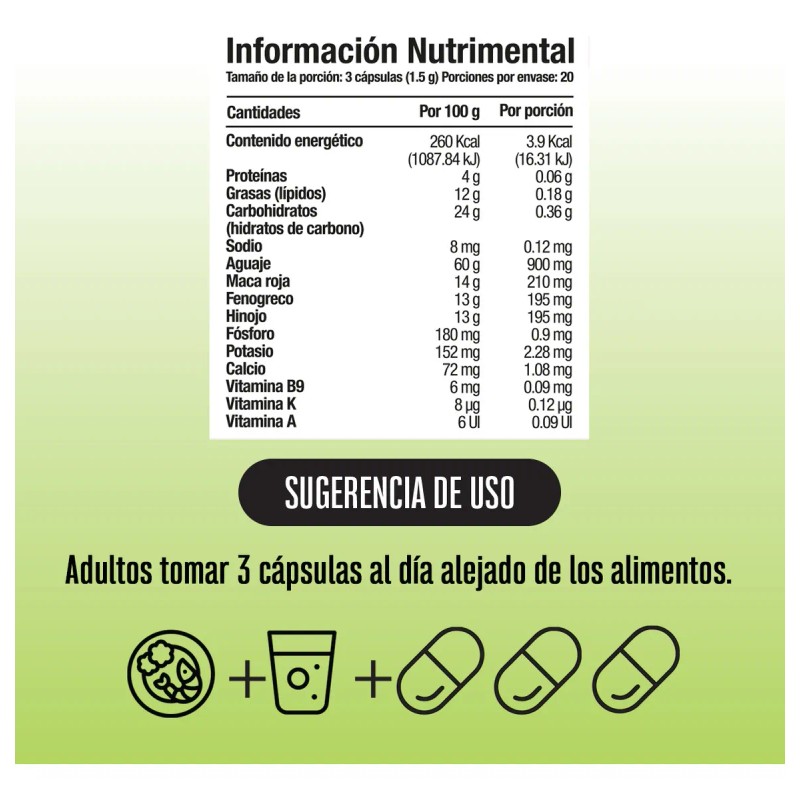 Kit 2 Aguaje Fenogreco Hinojo Maca Roja 60 Cpsulas Sabor Neutro Vegano Equilibrio Hormonal Vitalidad, Belleza Natural y Bienestar Femenino...