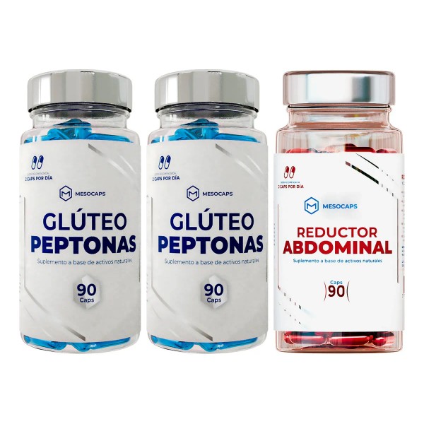 Kit 2 Frascos Glúteo Peptonas +1 Reductor Abdominal Cápsulas